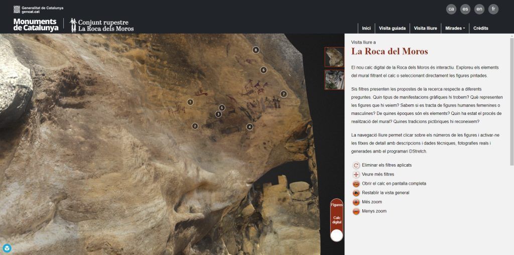 Reconeguda al Museum Connections de París el 2023 com una de les produccions innovadores més ben valorades en l’àmbit del patrimoni cultural, la Visita virtual a la Roca dels Moros del Cogul és pionera en la reutilització de bessons digitals 3D per a la producció d’experiències interactives dirigides al gran públic.