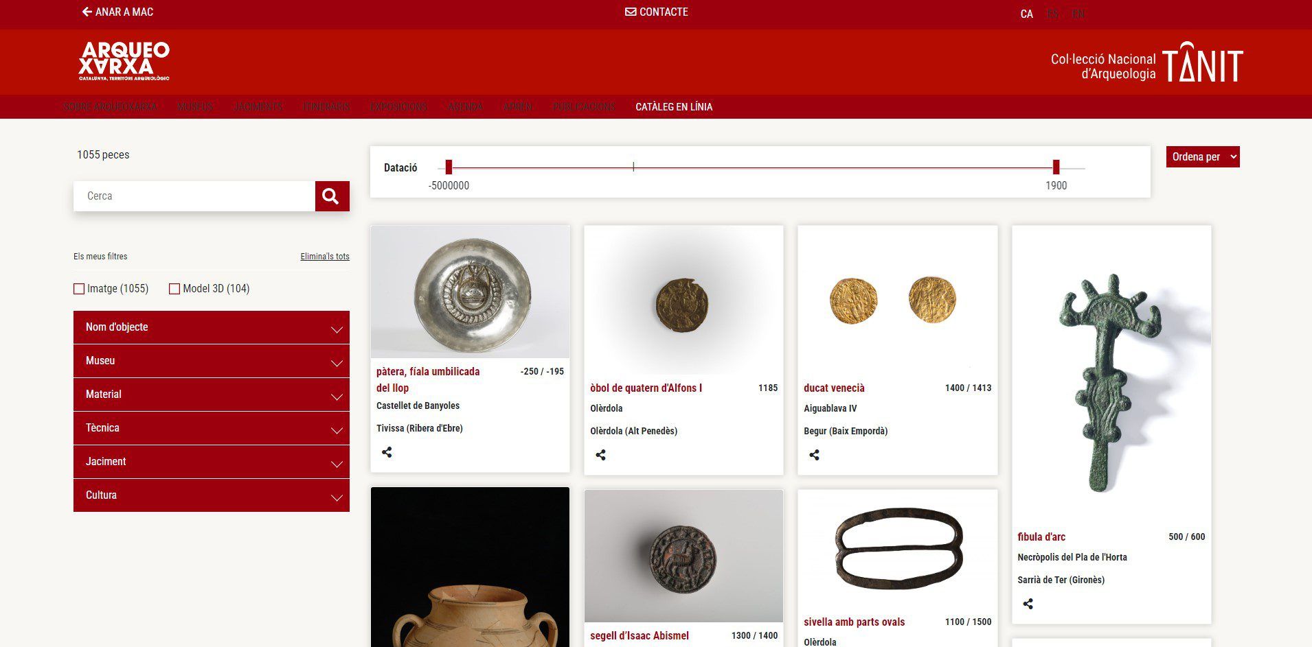 Es tracta d’una plataforma digital dissenyada per difondre els objectes més rellevants de les col·leccions arqueològiques de Catalunya. TANIT integra les col·leccions d’onze museus catalans i ofereix als usuaris una experiència de navegació rica i interactiva. La plataforma permet explorar la història de Catalunya des de la prehistòria fins a l’època moderna a través de més de mil objectes, i que conté més d’un centenar de models 3D.